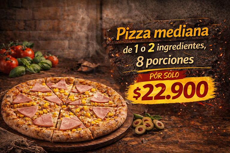Salsa Pietre´s Original + Queso 100% Mozzarella + Chorizo Colombiano + Tocineta + Maiz + Cebolla + Bbq.